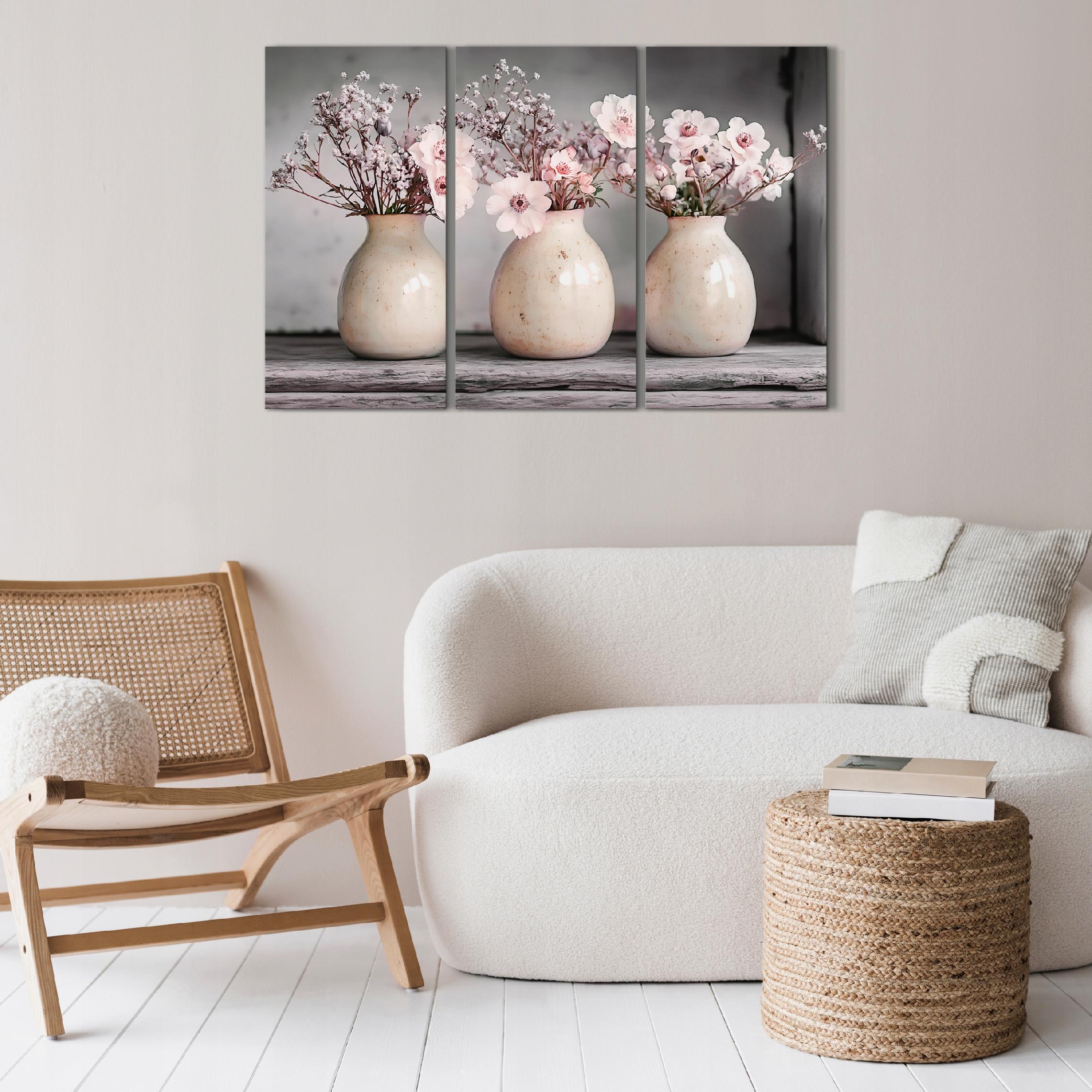 LUMASOUL Obraz na Płótnie na ścianę salon 90x60 Kwiaty Rustykalny 3 części