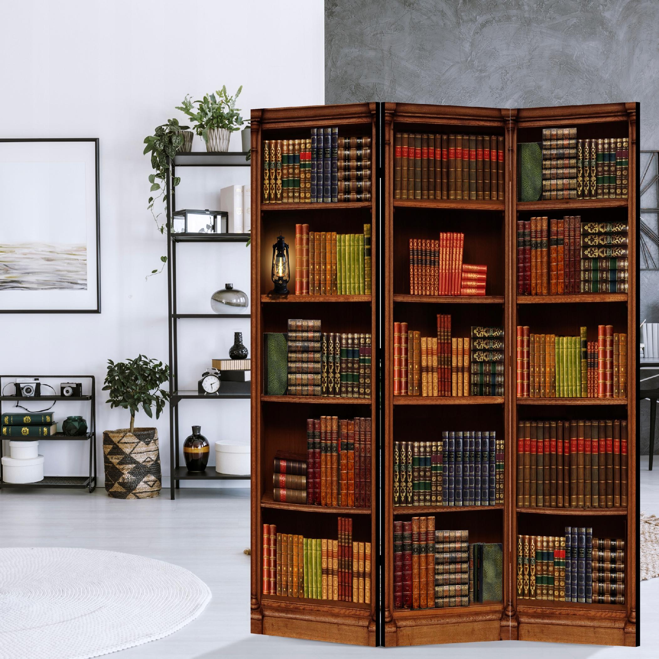 Parawan dekoracyjny pokojowy dwustronny Ścianka 135x172 Książki Rustykalny