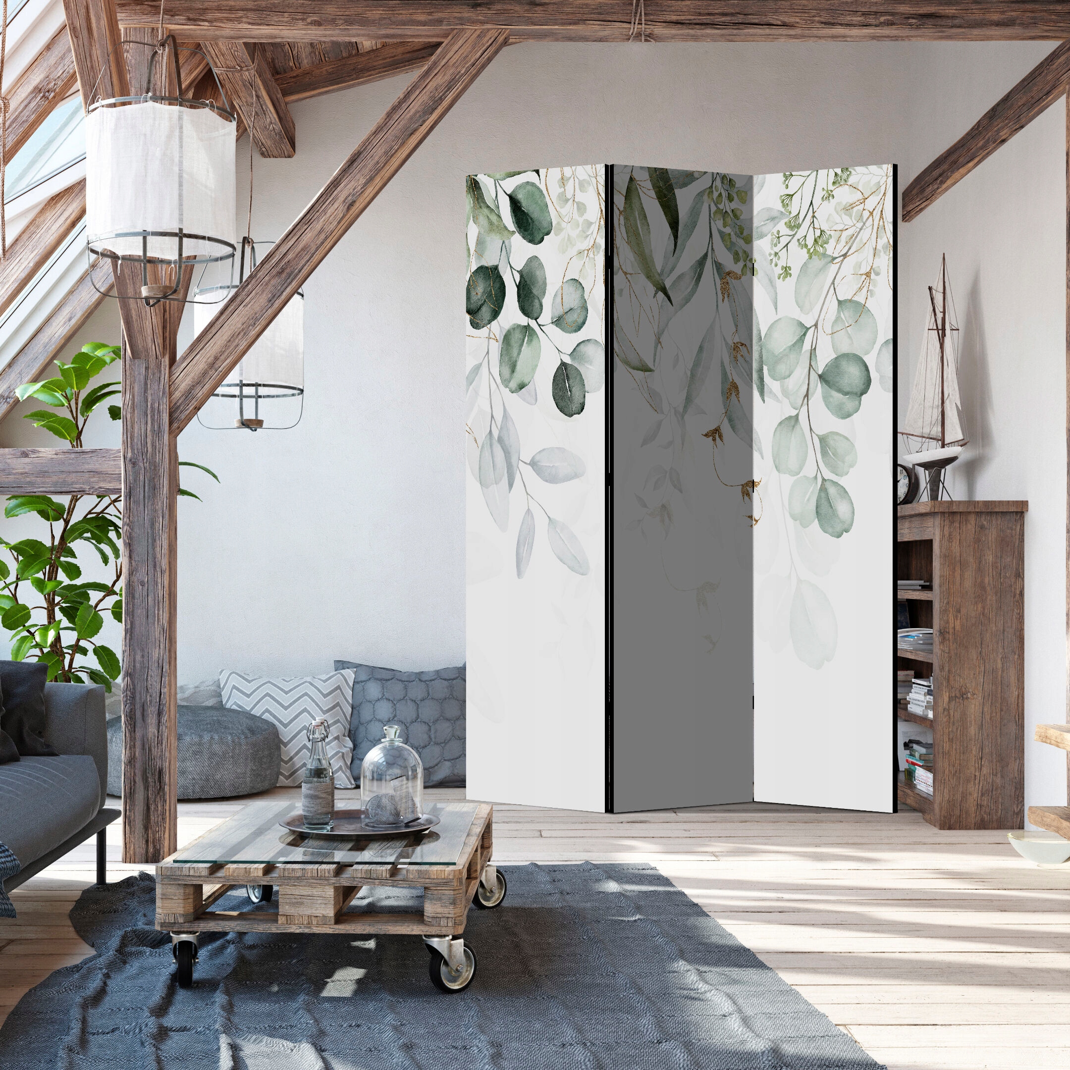 Parawan dwustronny 135x172 natura Eklektyczny